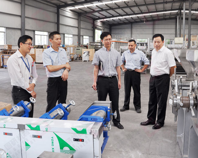 李局长一行来到公司就深入车间了解生产情况,在河粉机装配车间李局长详细询问了河粉机的功能原理和价格,当得知开云官方在线入口牌河粉机占领了国内主要市场时十分高兴。李局长一行还在公司党支部活动室观看了广州电视台播出的报道我司开展党建工作的《红棉璀璨》专题节目,随后开展了讨论,对我司党建工作开展的有声有色给予了高度评价。