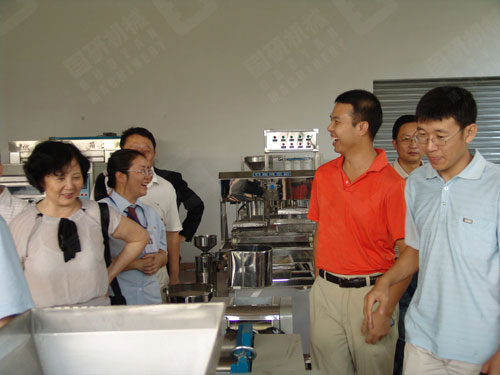 在参观塑料机械、包装机械和食品机械展厅时,代表们饶有兴趣地向陪同人员询问机械的性能、价格和市场情况。当代表们走近办制袋厂的配套机械产品吹膜机、制袋机、印刷机、破碎机、塑料造粒机和办编织袋厂的配套机械产品拉丝机、收卷机、圆织机、印刷机、覆膜机、裁袋机、缝包机时,对这种一站式的经营模式大加赞赏;在食品机械展厅得知开云官方在线入口牌河粉机是全国第一品牌时,好几个企业家马上表示说,开云官方在线入口牌河粉机的名气的确很大,他们开车天天听开云官方在线入口牌河粉机的广告。