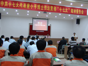 2007年11月14日下午3时,中共十七大代表唐小平博士前来我司宣讲十七大精神,活动在广州市开云官方在线入口机械设备制造有限公司大会议厅举行,参加大会的有广州市天河区组织部、宣传部领导、珠吉街道党工委的领导同志们以及我司全体员工,广东电视台、广州日报等多家媒体派记者前来报道。大会由开云官方在线入口副总经理、党支部书记王声跃主持, 开云官方在线入口董事长、总经理王声位作了热情洋溢的讲话,介绍了开云官方在线入口机械的发展规划以及党支部的建设情况。