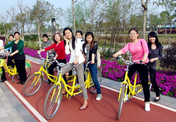 头顶蓝天白云,脚踏茵茵绿草,身边是碧水长堤,目之所及,绿树红花交相辉映。并时有白墙黑瓦、古色古香的亭台楼阁,铺上琉璃瓦的尖顶,迂回幽静的廊中榭间,处处彰显着岭南水乡的韵味。女同事们在阳光下欢呼雀跃,笑声被三月的春风送得很远。各色鲜花带来的惊喜,比赛骑车的刺激,采摘杨桃时的兴奋,聚餐给人的温馨感觉,让她们感觉到了全身心的放松和快乐。多位女同事不禁感叹:“和姐妹们聚在一起的感觉实在太棒了!公司真给力呀!”