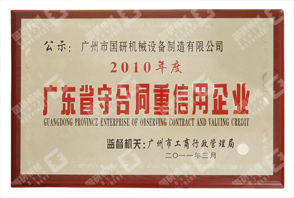2011年4月,继连续三年被评为“广州市守合同重信用企业”之后,开云官方在线入口机械再获殊荣,被评为2010年度“广东省守合同重信用企业”。